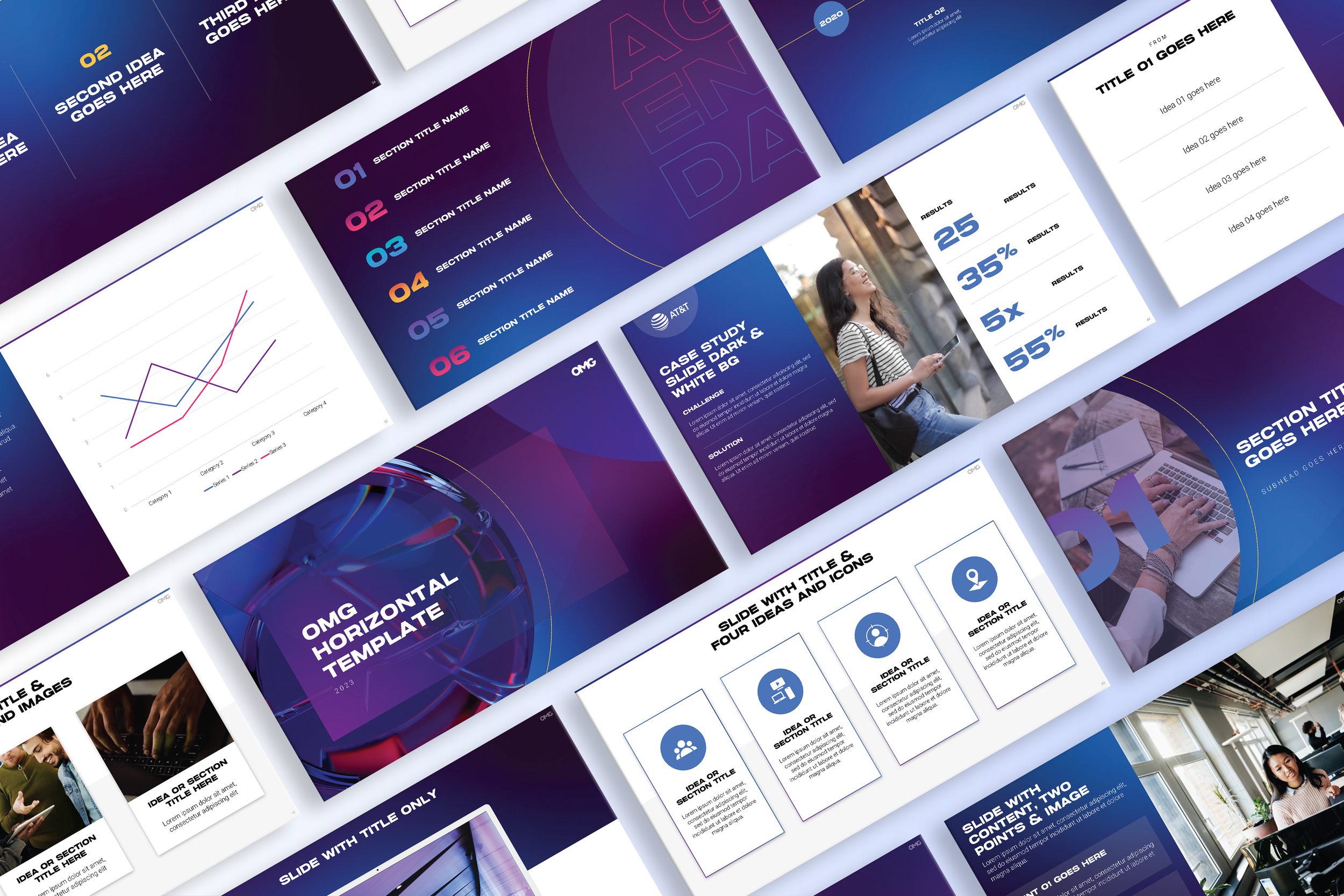 The rebrand was translated consistently across all touchpoints, from PowerPoint templates and social content to internal communications and external marketing. The result was a flexible, modern system that elevated OMG’s presence and reflected who we are as a collective.